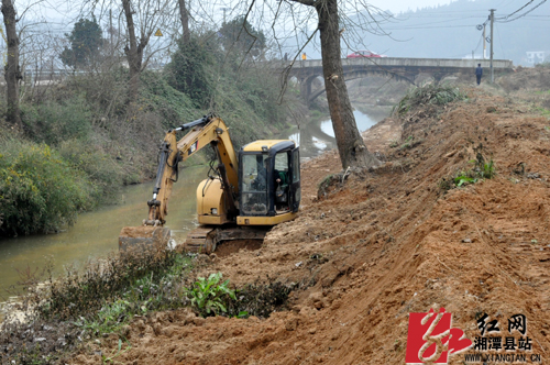 中国湘潭县网1月12日讯(记者 杨建)日前,在分水乡的曲江河综合治理的施工现场,施工队正利用河道的枯水期,加快项目建设进度。据分水乡水利站负责人介绍,曲江河综合治理工程正进行河道疏通、河堤护坡加固等施工,预计3月可完工,防洪能力由原来的5年一遇提升至50年一遇。