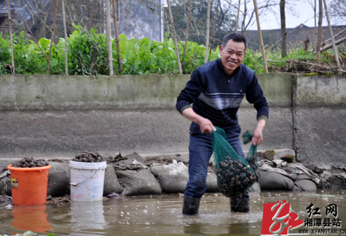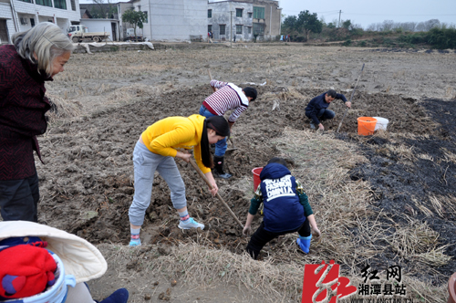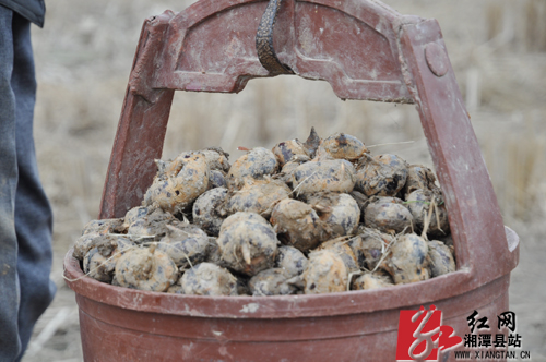 中国湘潭县网1月14日讯(记者 杨建)冬天天冷了,大家都爱吃些甜的食物,荸荠因其味甜多汁、清脆可口,既是水果,又是蔬菜,成为深受大家喜爱的时令之品。眼下正是荸荠收获时节,在河口镇沙泉村村旁的农田里,村民们两人一组、三五成群地翻田疏土、采挖荸荠,呈现一幅忙碌的劳动景象。
