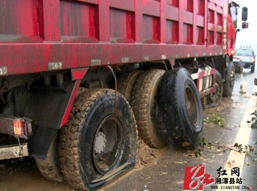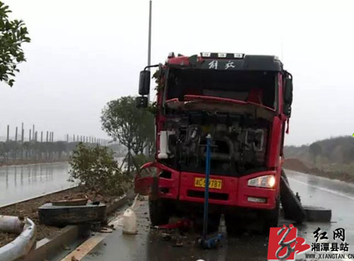 中国湘潭县网1月20日讯(记者 杨建)日前,在大鹏西路河口镇山湖村地段,一辆正在行驶中的货车突然爆胎,顿时车辆失去控制,致使沿线近80米绿化隔离带被撞毁,所幸事故没有造成人员伤亡。