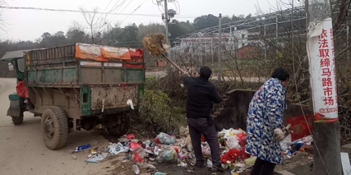 张立军和他的妻子唐碧兰都是旷家新村的村级保洁员,负责全村的环境卫生打扫及垃圾清运。面对此次来势汹汹的新冠肺炎疫情,夫妻俩从正月初六就已开始工作,每天清晨都能看见他们在旷家新村进行环境卫生清扫的身影。戴上口罩、手套,驾驶着收集车,夫妻俩在村道上开始沿线打扫、收集垃圾。虽然一路遇到的村民寥寥无几,但垃圾筒里的垃圾丝毫不减,甚至比以往更多。因此,夫妻俩每天大多数时间都奔波在打扫、整理及转运垃圾的道路上。