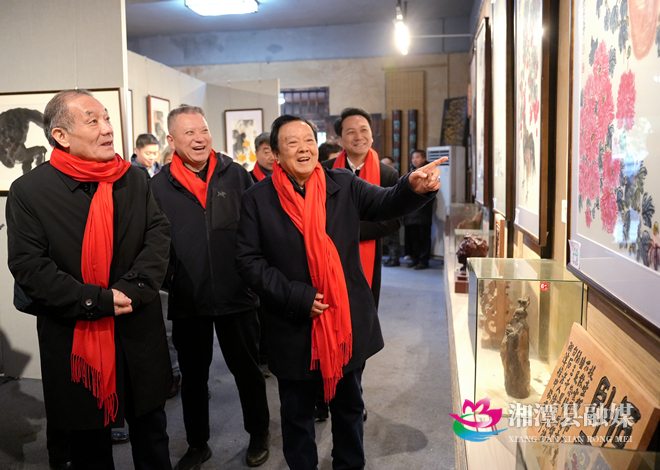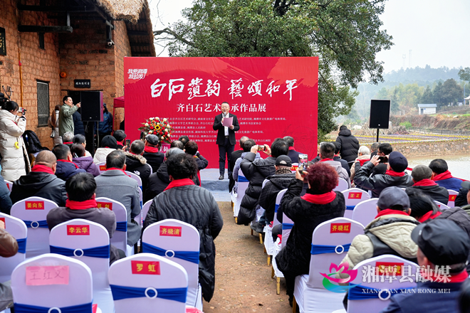 湘潭县融媒体中心1月1日讯(记者 彭圆 张学)1月1日,“白石遗韵·艺颂和平”齐白石艺术传承作品展在湘潭县齐白石故居前坪启幕。据悉,本次展览将持续至1月5日,为大家奉上一场家门口的文化盛宴,近距离邂逅齐派艺术魅力。湖南省人大常委会原副主任杨维刚、武警甘肃总队原总队长左宗国,县委书记王利,县领导文香军、肖小年、徐姗姗等嘉宾领导以及来自全国各地的齐派艺术家、齐白石后人代表、艺术研究专家出席活动。