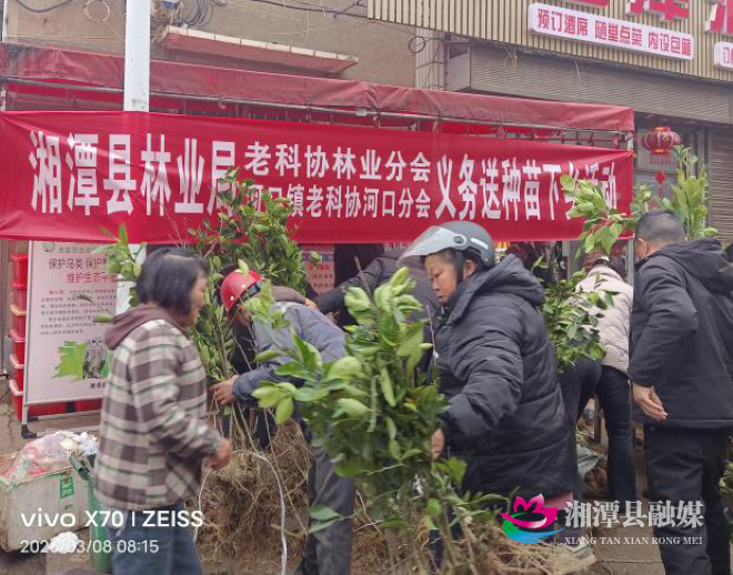 湘潭县融媒体中心3月18日讯(记者 马婧 通讯员 谢明启)春回大地,万物复苏,正值植树造林的黄金时节。近日,湘潭县油茶产业银发人才工作站联合河口镇银发人才协会,组织林业专家深入双板桥集市,开展“送良种苗木送下乡”活动,将优质苗木与专业技术送到群众家门口,以银龄智慧为乡村振兴注入绿色动能。
