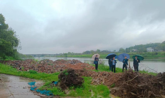 湘潭县融媒体中心4月12日讯(通讯员 黄平)日前,县河长办、县检察院、镇河长办相关负责人冒雨前往涓水射埠村段入口处滩涂开展联合巡河,实地勘察乱倒建筑垃圾河长制问题线索,并在射埠村村委会就该问题进行调查了解及现场交办,同时要求镇村加大日常巡河发现问题、及时处置问题能力。