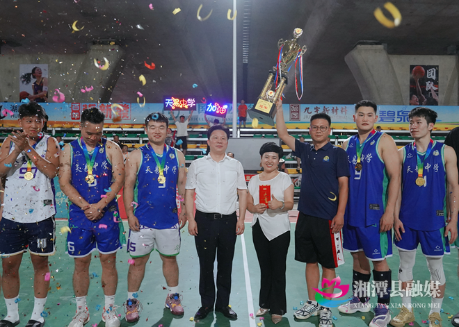 湘潭县融媒体中心8月23日讯(记者 王思月 肖健宇)8月22日晚,2025年湘潭“天易杯”嗨BA篮球赛企业组决赛在湘潭下摄司大桥篮球场激情上演。对战双方天易发展集团队与天易中学队的球员们在球场上全力以赴,为观众们呈现了一场紧张刺激、高潮迭起的篮球盛宴。县委副书记、县长宋任飞,县领导武强、文香军、陈赞出席颁奖仪式。