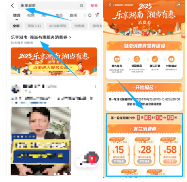 登录抖音APP首页搜索“乐享湖南”,再点击下方活动入口进入消费券报名主会场进行报名。或者进入“乐享湖南”官方话题页,点击下方“横幅”进入会场进行报名。未实名用户需要按照页面指引完成实名认证。