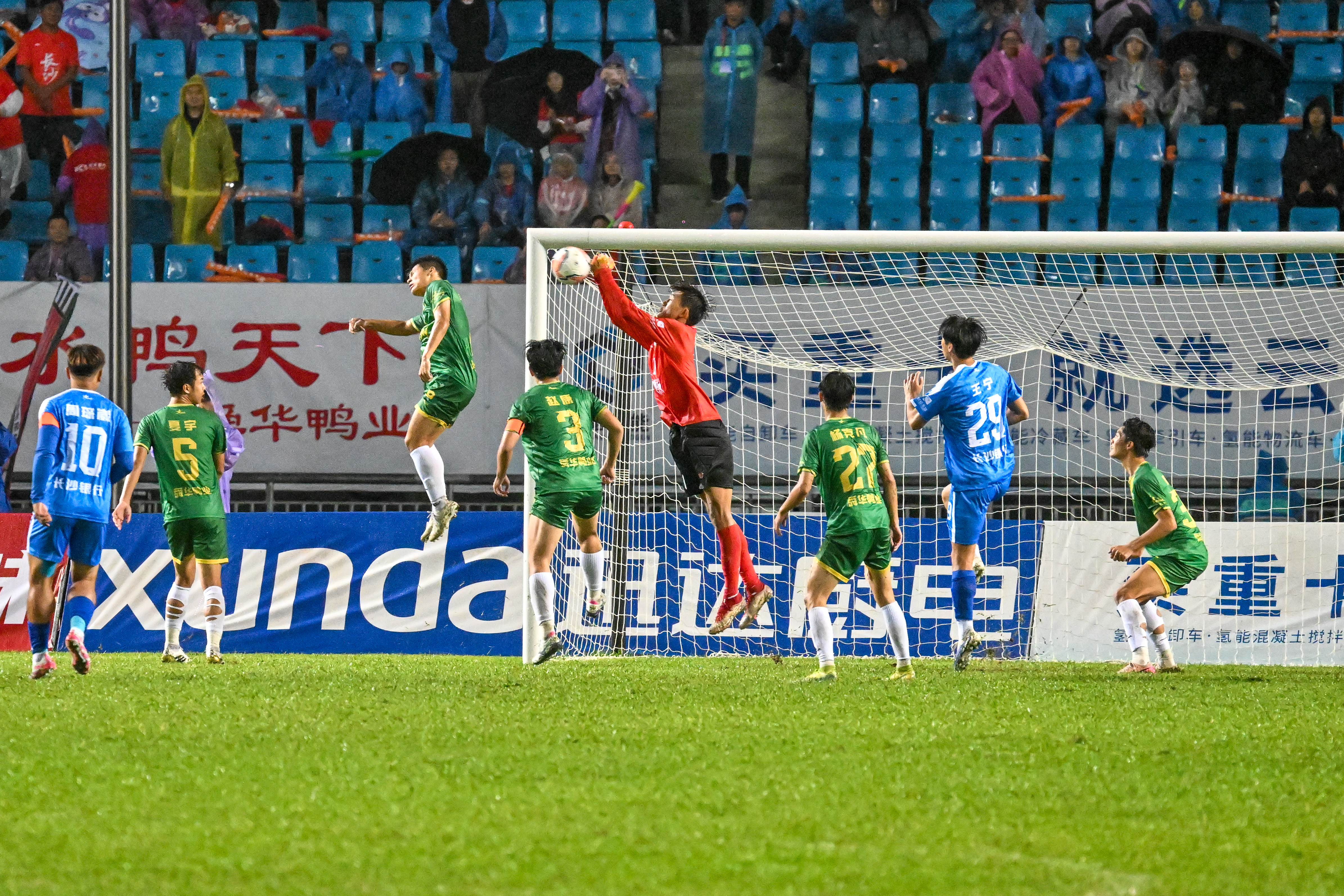 9月20日,郴州队守门员刘翔(右四)在比赛中。陈哲君 摄