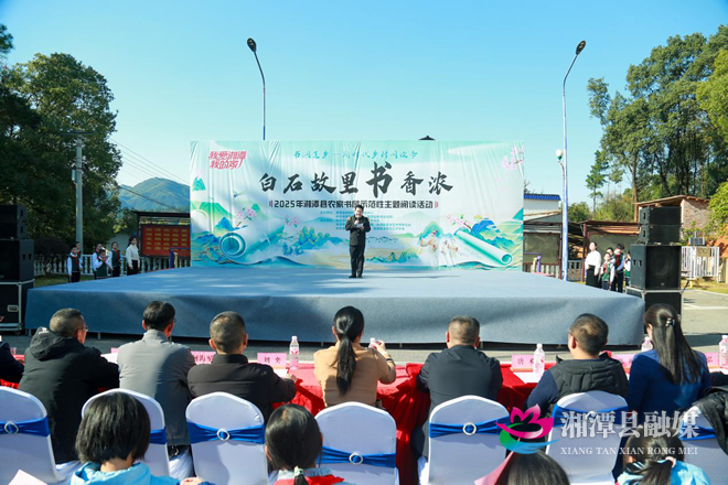 湘潭县融媒体中心11月19日讯(记者 黄成 张学)11月19日,“书润莲乡——新时代乡村阅读季”2025年湘潭县“白石故里书香浓”农家书屋示范性主题阅读活动在白石镇杏花村举行。县委常委、宣传部部长文香军参加。