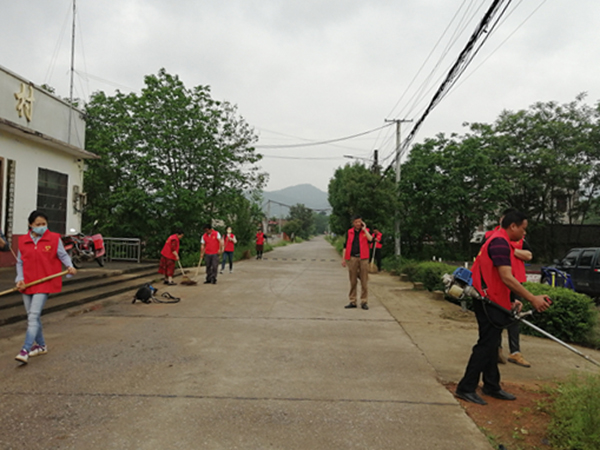 在集镇区及村部周边,村支两委组织党员、预备党员及入党积极份子清理卫生死角、清扫路面。
