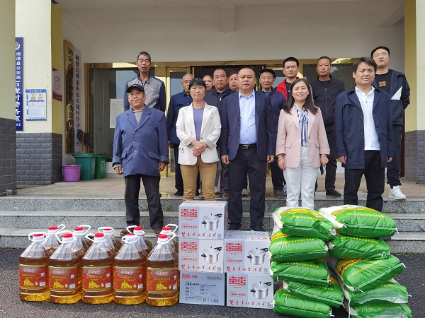 “咱们村目前杨梅产业规模多大了”“村里有多少亩的闲置土地”“交通怎么样”,座谈会上,湘潭华云劳务有限公司董事长肖波云询问了解村级情况与需求,详细介绍企业现有资源及项目意向,与驻村队、支村两委成员共同探讨合作路径与后续帮扶举措。座谈会后,双方一同实地走访了该村特色乌梅基地,现场考察基地设施环境。随后,企业为石垅村监测户、脱贫户送上了家用电器、食用油、大米等慰问物资。